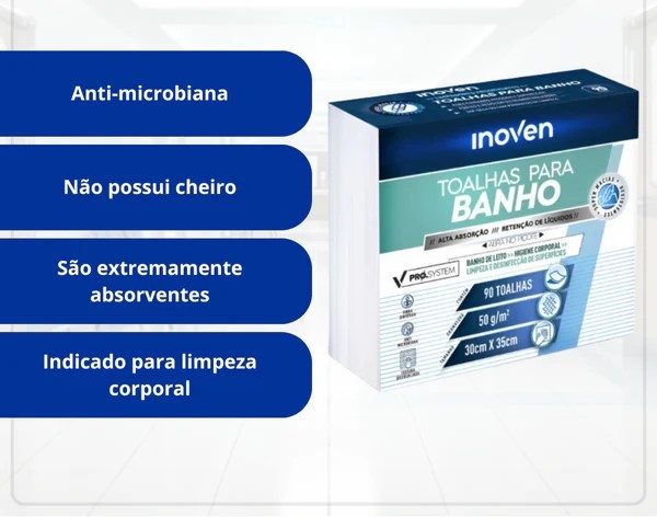 Toalhas descartáveis para banho de leito, assepsia e higiene dos pacientes. Alta absorção, toque macio e seguras para peles sensíveis. Ideais para hospitais, clínicas, lares de idosos e cuidados em casa.